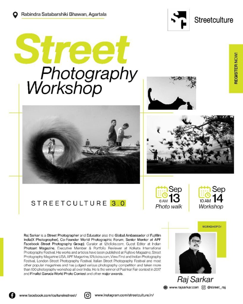 A 2-Day Street Photography Workshop and Exhibition in Agartala, Tripura like never before. Streetculture 3.0, a unique 2-day street photography workshop and exhibition being on display today and tomorrow at Rabindra Shatabarshiki Bhawan.